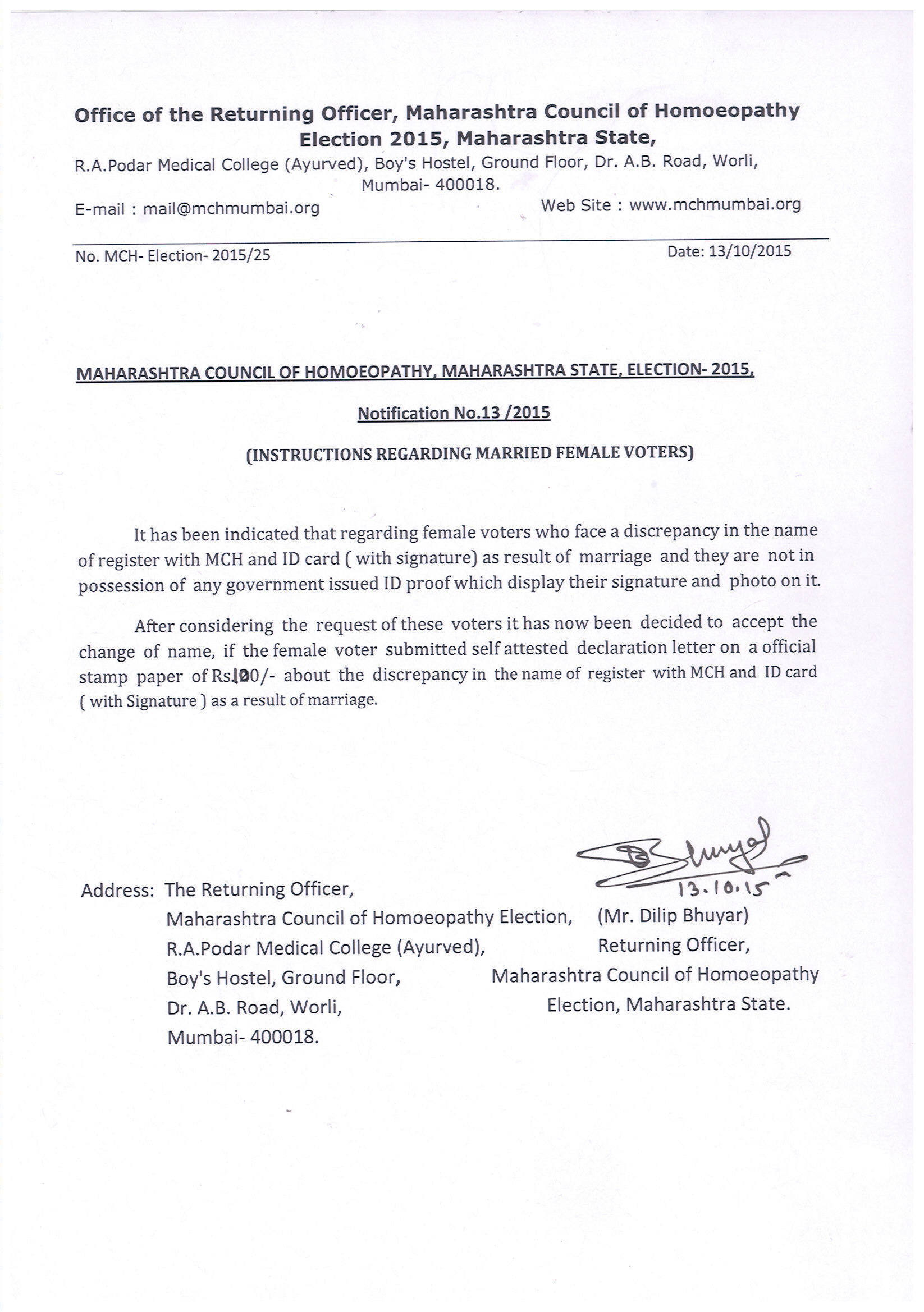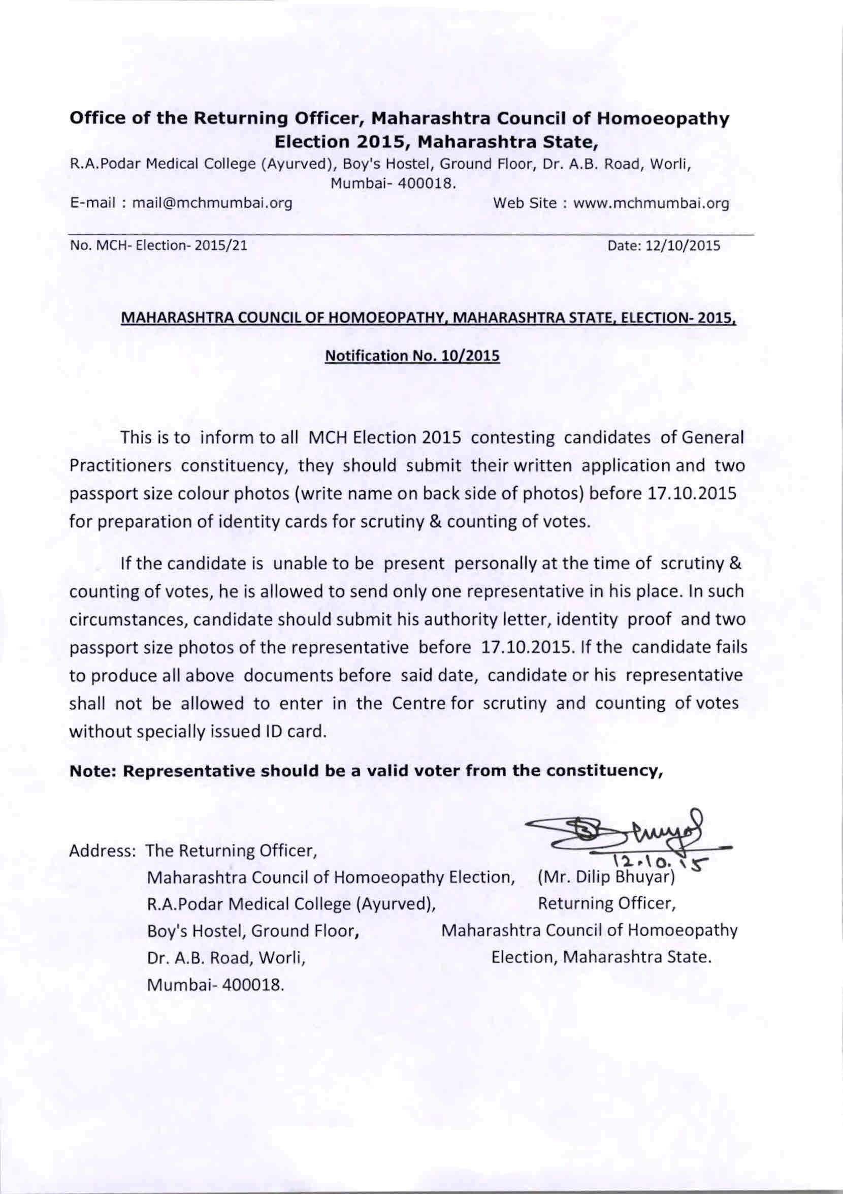 2 21/10/2015 MCH ELECTION 2015 RESULT