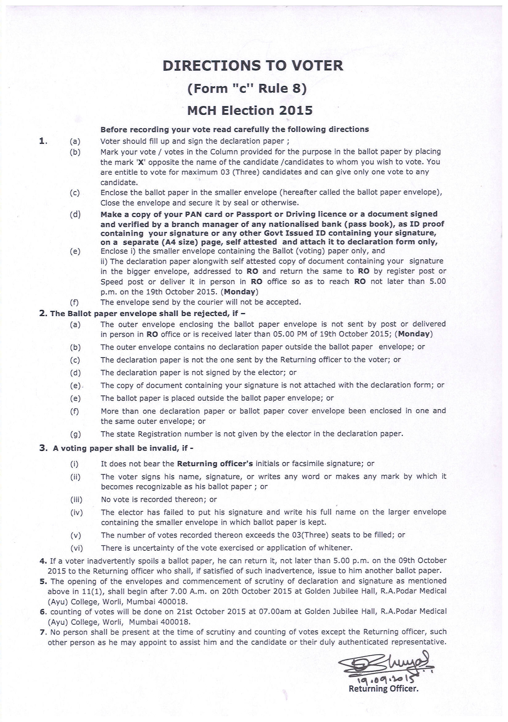 8 19/09/2015 DIRECTIONS TO VOTERS